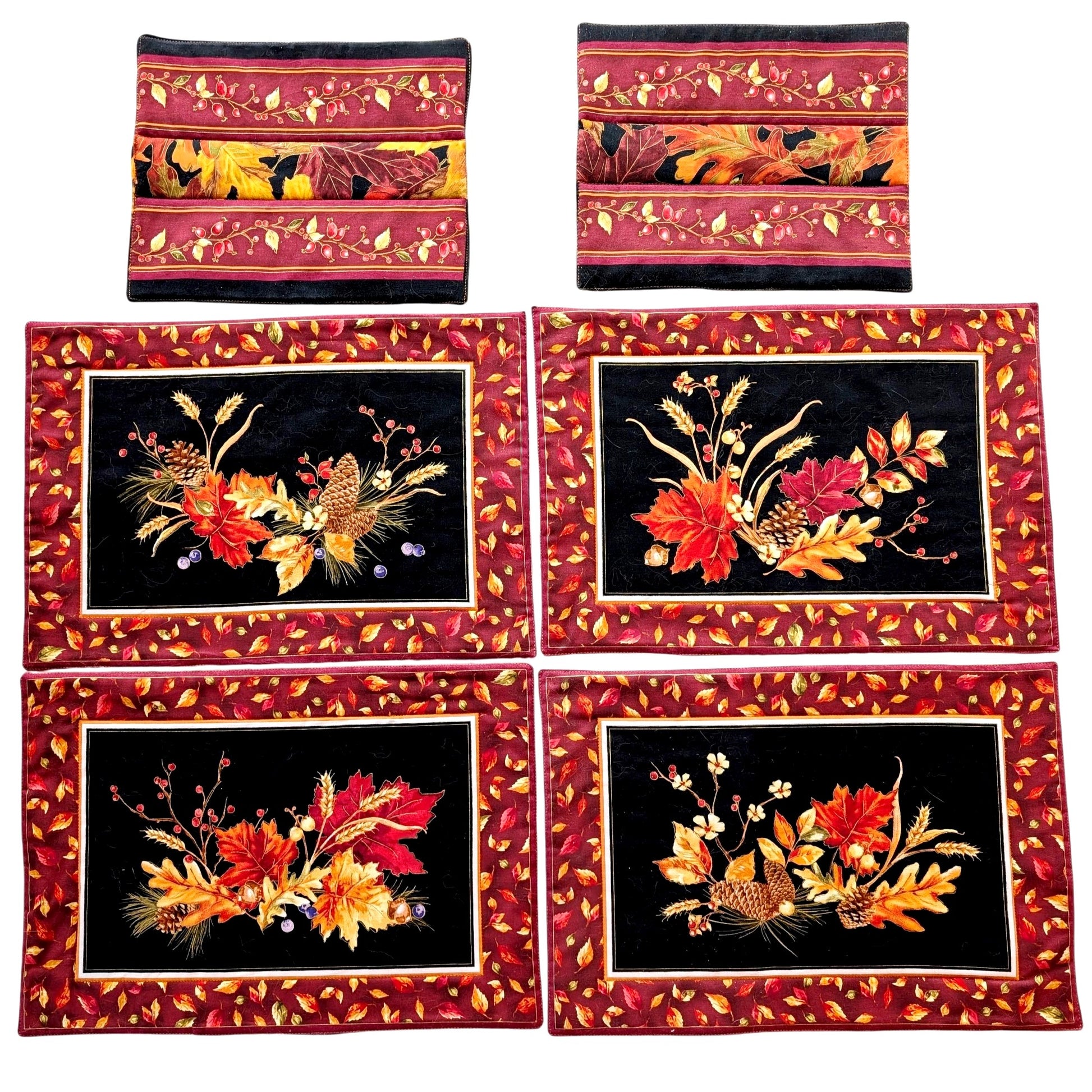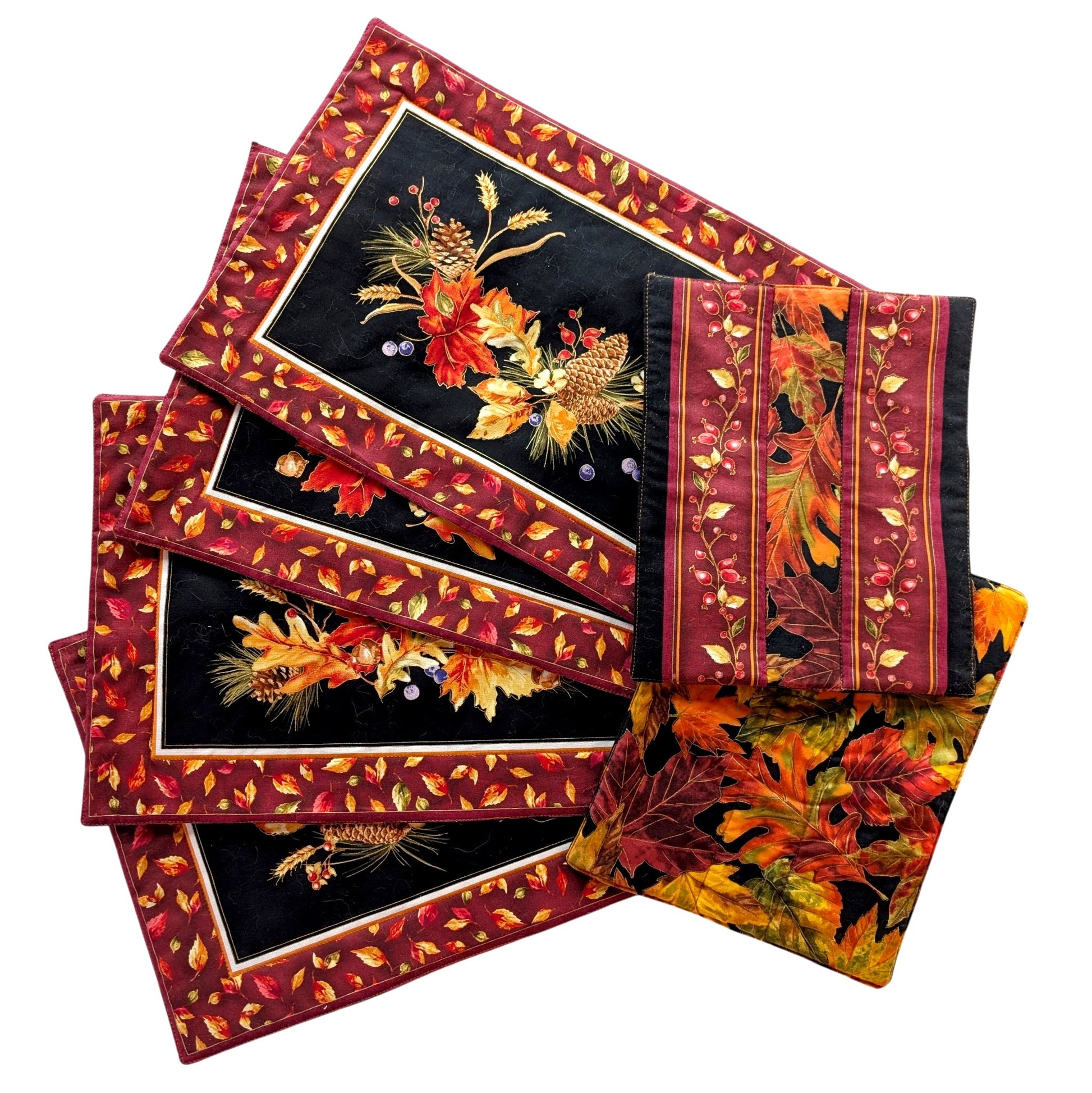 Handmade Quilted Autumn Table Setting: Set of 4 Placemats & 2 Insulated Trivets