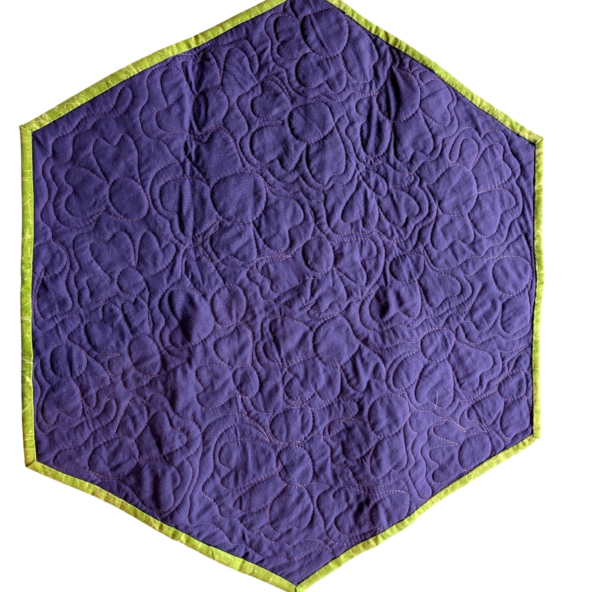 Reversible Utility: The back is finished with a striking solid purple fabric and a bright lime green binding, offering a completely different look if you want a bolder color block display.