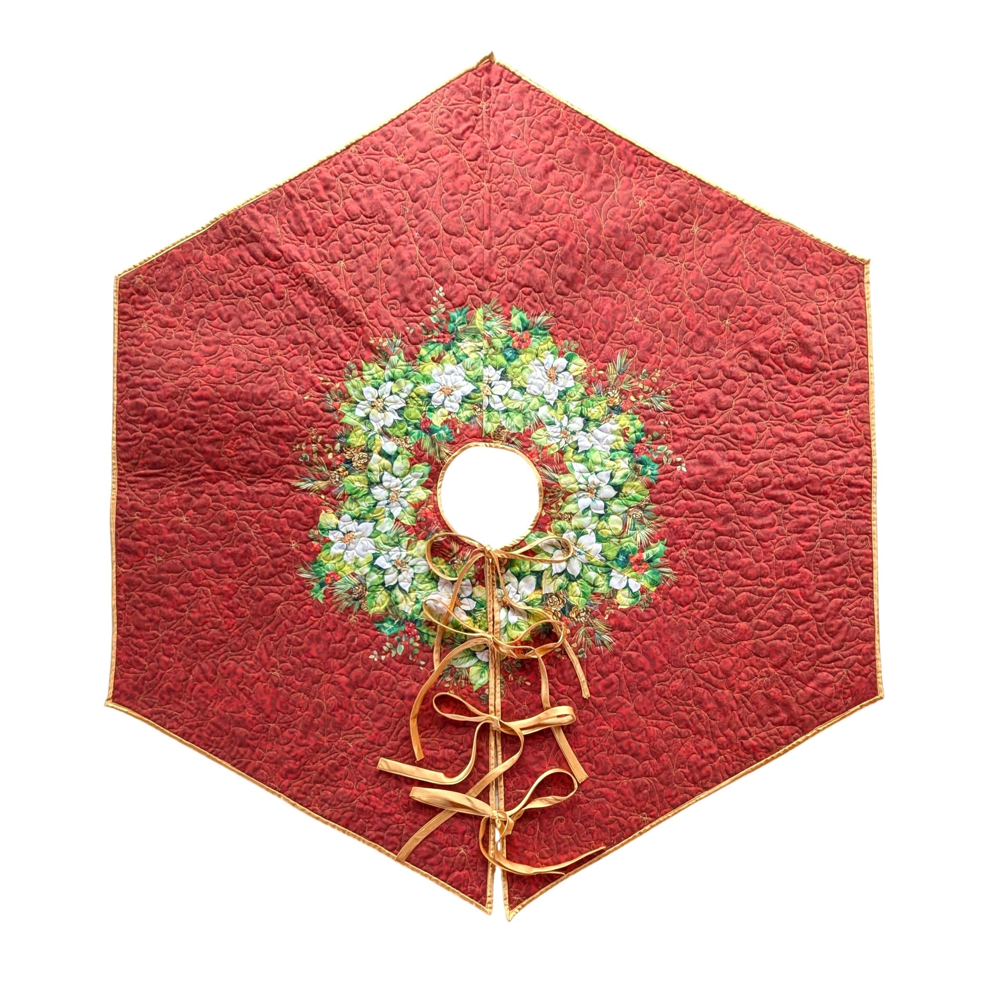 Tree Skirt (47" x 41"): Reversible Poinsettia Design, Longarm Quilted Heirloom
