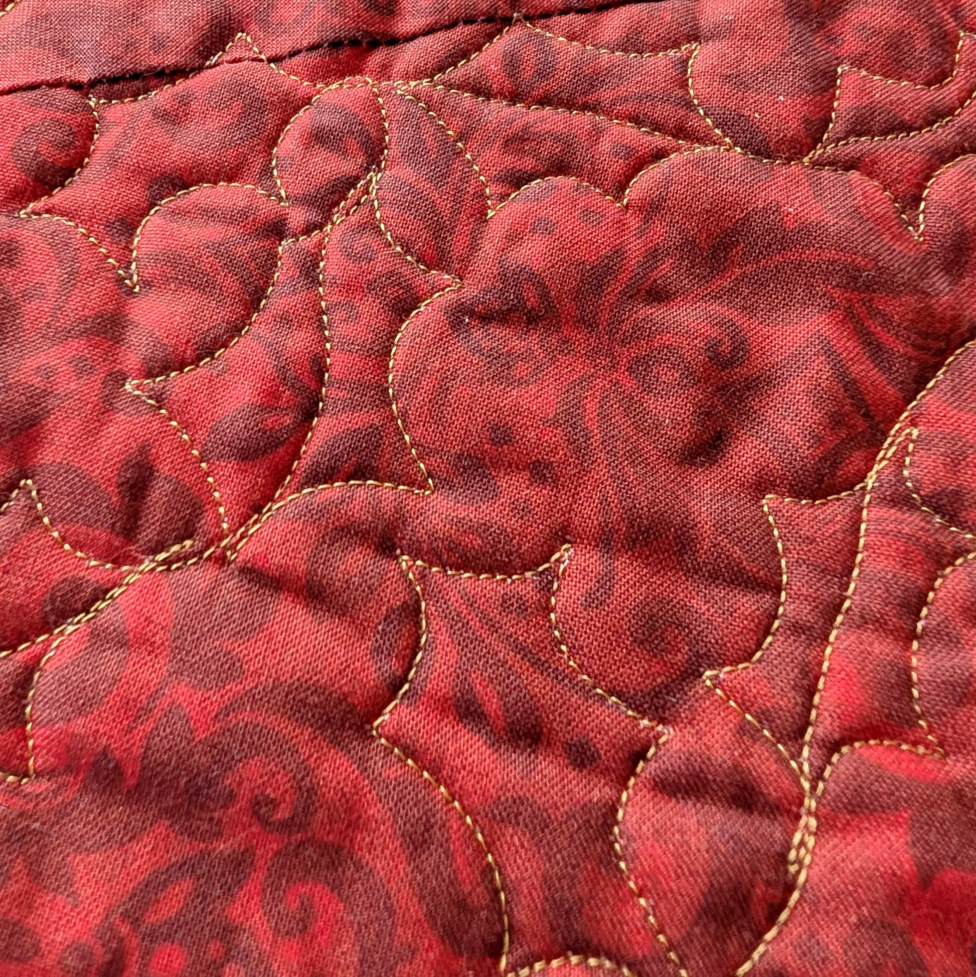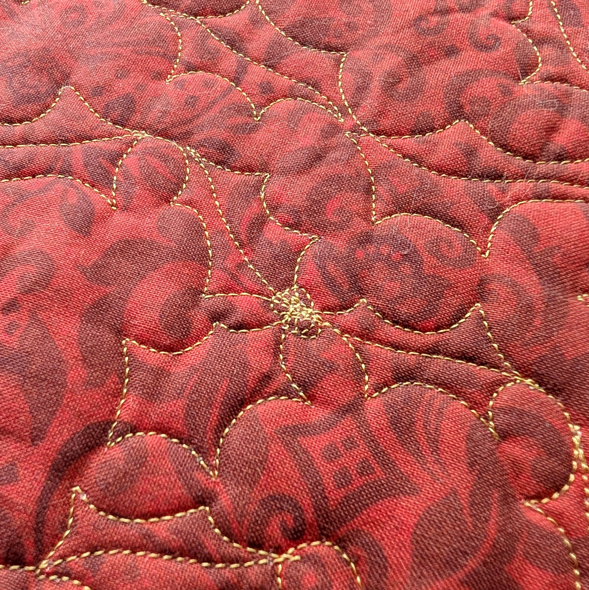 Artisan Longarm Quilting: The entire skirt is secured and textured with hand-guided free-motion quilting in an elegant holly leaf and berry pattern. This expert quilting adds durability, rich dimension, and true artisan value.